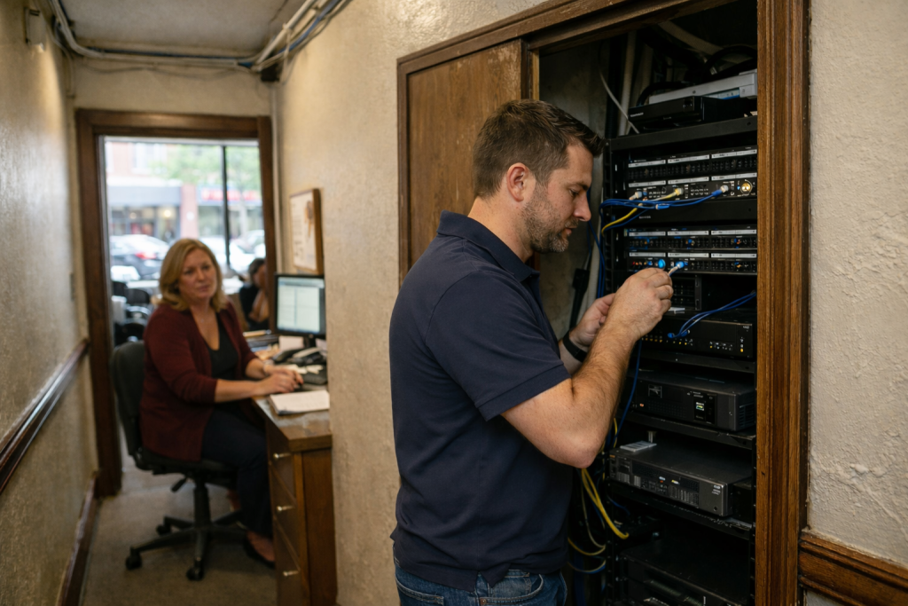 Spend enough time supporting businesses in this part of Milwaukee and patterns emerge quickly. The buildings along North Avenue and the surrounding corridors are often older commercial stock — attractive from the street, full of character inside, and occasionally a genuine challenge from a wiring and infrastructure standpoint. Thick plaster walls that kill Wi-Fi signals, electrical panels that were never designed to support a modern network, server closets that started life as coat closets and never quite graduated. A business owner who moved into one of these spaces five years ago and has been adding devices and users ever since may be running on infrastructure that was jury-rigged along the way rather than planned from the beginning.